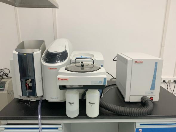 主量元素分析实验室 一、实验室简介 本实验室隶属于英国365集团公司官网实验中心。主要功能是:(1)岩石、水系沉积物、土壤等样品中主量、痕量元素测定;(2)环境水样中主要阳离子、重金属等浓度测定;(3)固体材料中无机金属元素含量测定。实验室位于实验楼B403。 二、仪器设备 电感耦合等离子发射光谱仪 原子吸收光谱仪 仪器设备:电感耦合等离子发射光谱仪)&原子吸收光谱仪 品 牌:美国ThermoFisher 主要参数: *分辨率 0.005nm~200 nm*线性动态范围 1010*波长范围 165-1100nm,任意谱线 *短期稳定性 RSD% < 0.5*长期稳定性 RSD% < 2.0 ( 4 小时) *Icp-Aes分析速度 73个元素/分钟 三、实验室责任人 李佳 联系电话:13693603527 四、实验预约流程 需与实验室责任人确定样品类型、数量后,下载填写“分析测试申请表”或在平台处系统中预约,在开展实验当天提交纸质申请表。