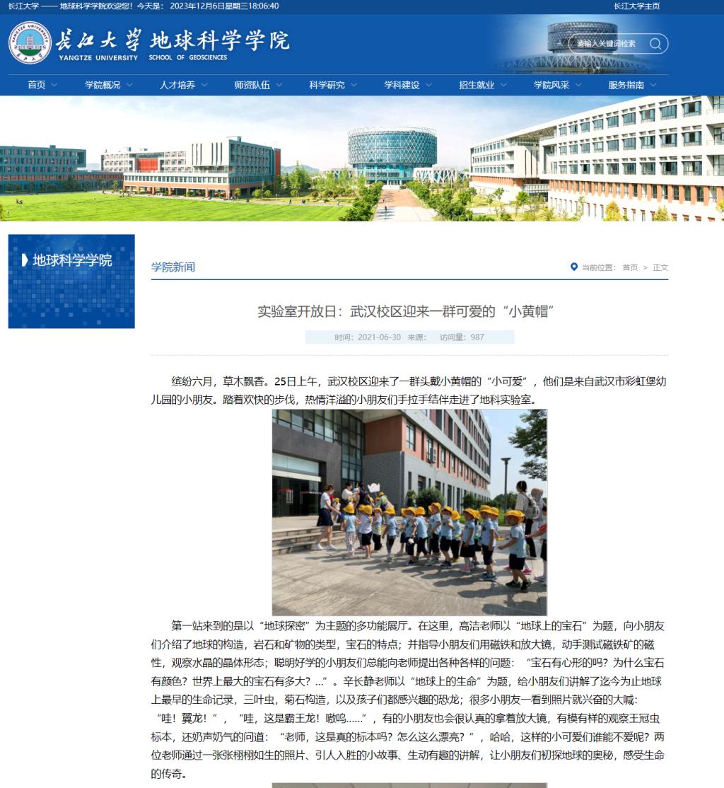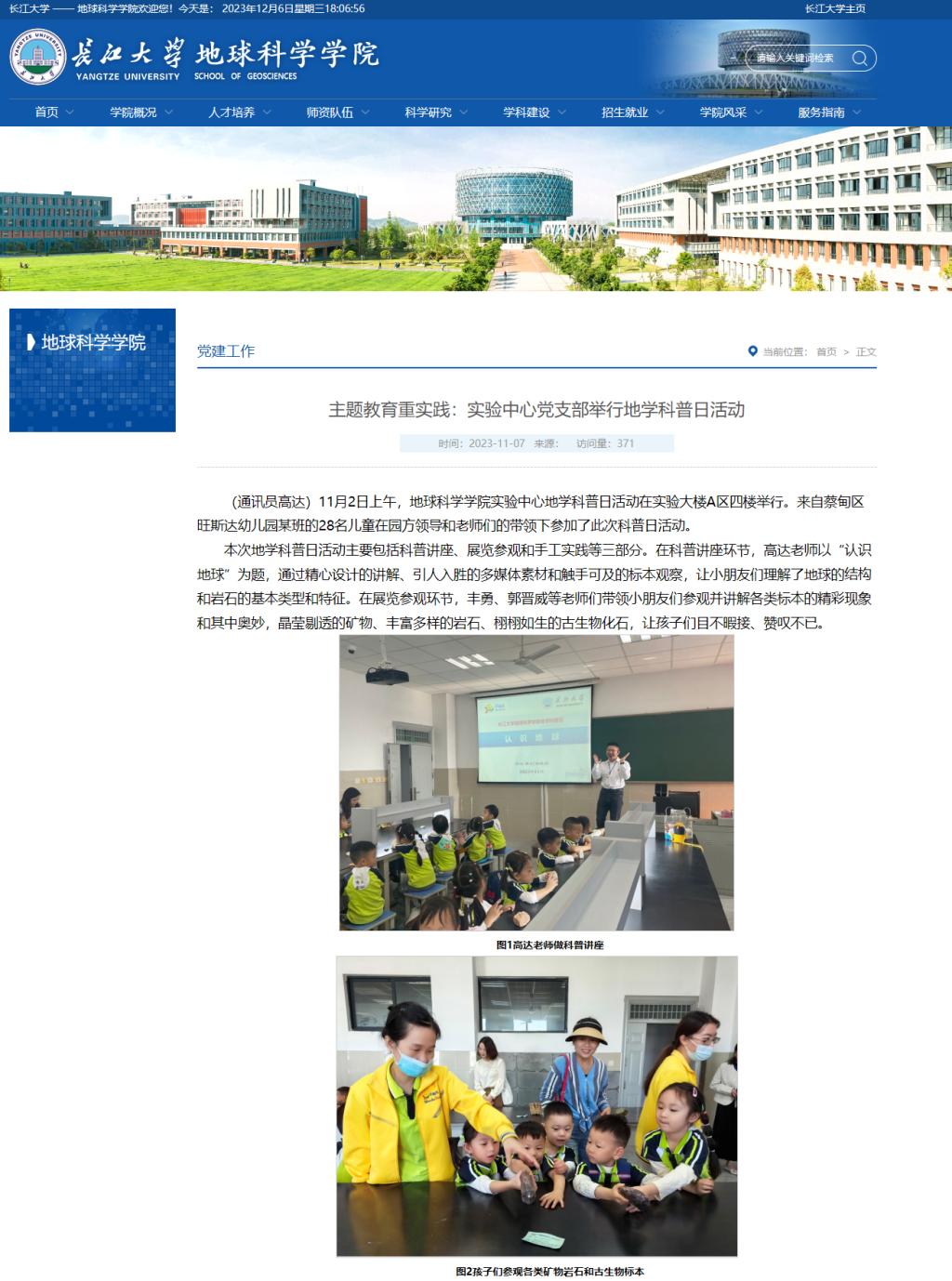 实验中心利用现有的陈列室条件,自2021年起连续3年举办了3次地球科学科普日活动,其间组织科普报告6次,受众240余人(图44-图50)。科普参观和讲座主题包括“认识地球”、“地球宝石探密”、“穿越恐龙时代”、“畅游沧海桑田”、“制作宝石盒”等。为地球给孩子们播洒了热爱地球科学的种子,提升了公司地质学科影响力和美誉度。 序号 主题内容 面向对象 受众人数 时长 时间 1 1、地球的组成2、地球的历史 武汉市彩虹堡幼儿园 160 2.5小时 2021年6月 2 1、认识地球2、地球生命演化 武汉市旺斯达幼儿园 40 2.5小时 2022年7月 3 1、认识地球2、制作宝石盒 武汉市旺斯达幼儿园 40 2.5小时 2023年11月 孩子们参观各类矿物岩石和古生物标本 孩子们参观各类矿物岩石和古生物标本 高达老师做科普讲座 高洁老师展示萤石奇妙的“荧光反应” 孩子们展示制作完成的宝石标本盒