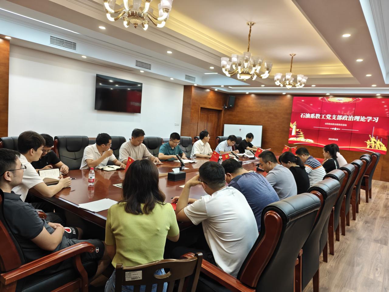 (通讯员陈鹏)2024年6月24日下午,在石油科技大楼C201会议室,经理朱光有同志为石油系教工党支部全体教师党员上了一堂纪律党课。结合支部党日主题“深化党纪学习教育,增强纪律意识,提高党性修养”开展,本次党课的目的是增强党员纪律意识,牢记教师使命。