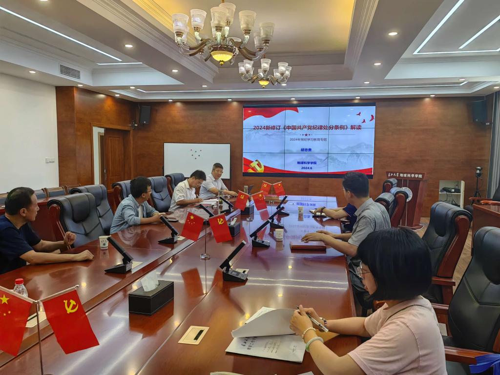 胡忠贵副经理还结合地球科学系教工党支部的实际情况,提出了针对性的工作要求。他要求地球科学系支部要将党纪学习教育深入到日常工作学习中,同时加强支部建设,为地球信息科学与技术新专业建设贡献力量。