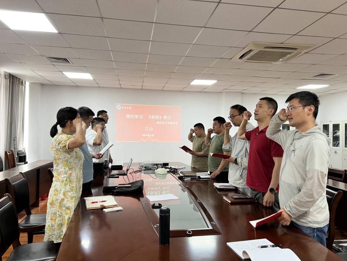 随后,全体党员围绕“《中国共产党纪律处分条例》学习心得”为主题展开研讨。高贤君表示:“通过学习,我对修订后的《条例》有了更为深刻的认识和理解,切实增强了思想自觉和行动自觉,在今后的工作和生活中,更要加强自我管理和监督,时刻保持谨慎和敬业的精神风貌”;邓帆表示:“要把《条例》内容作为规范日常言行的衡量标尺和规范准则,学在平常、抓在日常、勤于反思,筑牢纪律底线,增强纪律定力”。