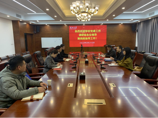 (通讯员潘志远)为充分发挥全面从严治党引领和保障作用,推动公司党建工作高质量发展,3月23日下午,公司机关党委书记周锦华、公司党委组织部副部长张娟、校办副主任陆峰一行来到公司开展党建工作调研。公司党委书记杨全辉、副书记冯舒、地质系党支部书记吕奇奇、院办主任张昊和公司党建秘书潘志远参加座谈会。