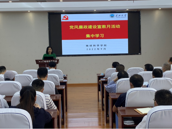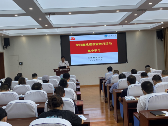 (通讯员潘志远)为弘扬清廉守正担当实干之风,赋能高质高效清廉地科建设,推进党风廉政宣传月活动深入开展,9月1日下午,地科公司全体教职工在石油科技大楼C301会议室进行党风廉政建设宣教月活动集中学习,会议由党委书记杨全辉主持。
