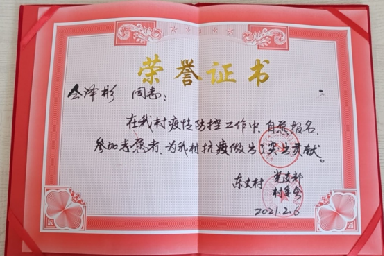 奋勇向前,“疫”站到底。2021年寒假期间,公司30余名员工党员和积极分子们响应党和国家的号召,主动报名家乡的抗疫志愿者,担起当代青年的责任。矿产QX201班的武建伟去年6月逆行返汉,主动报名参与毕业生返校离校志愿者工作,帮同学们搬行李、代发毕业证,为同届的毕业生服务。今年1月,他再一次选择披上红马甲,成为家乡的老员工志愿者,用行动诠释了乐于奉献、勇于担当的志愿者精神。矿物QX201班的仝泽彬和他的父亲主动请缨,父子上阵,投入到家乡的抗疫志愿工作中,仝泽彬觉得:“身为新时代的研究生,做点力所能及的事,报效祖国、回报社会,让更多人过了一个安心年、健康年,是充实而快乐的”。本科生党支部何一鸣在回到家乡的第二天就去社区报了名,参加抗疫志愿者,每天早出晚归,宣传防疫知识,入户走访摸排,进行核酸检测预登记,站岗值守。面对紧张而充实志愿者服务工作,何一鸣从不觉得辛苦,她用实际行动证明了新时代的青年在危难时刻敢于担当的精神,是好样的、靠得住的。