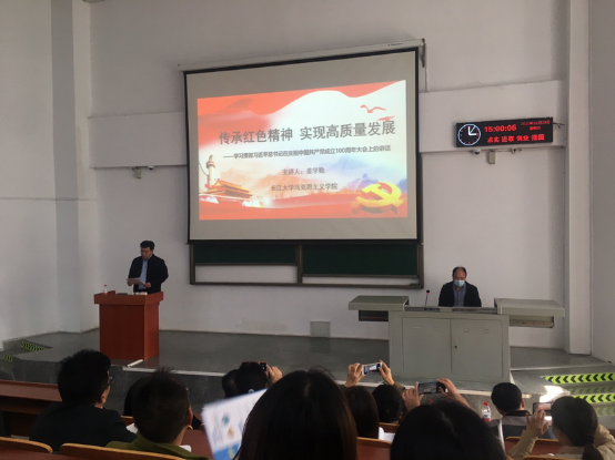 为深入学习贯彻习近平总书记“七一”重要讲话精神,推动党史学习教育走深走实,10月28日下午3点10分,公司组织全体教职工和员工党员参加“学习贯彻习近平总书记“七一”重要讲话精神”主题宣讲会。此次宣讲会由英国365集团公司官网马克思主义公司经理姜学勤教授主讲,主题为“传承红色精神、实现高质量发展-学习贯彻习近平总书记在庆祝中国共产党成立100周年大会上的讲话”。