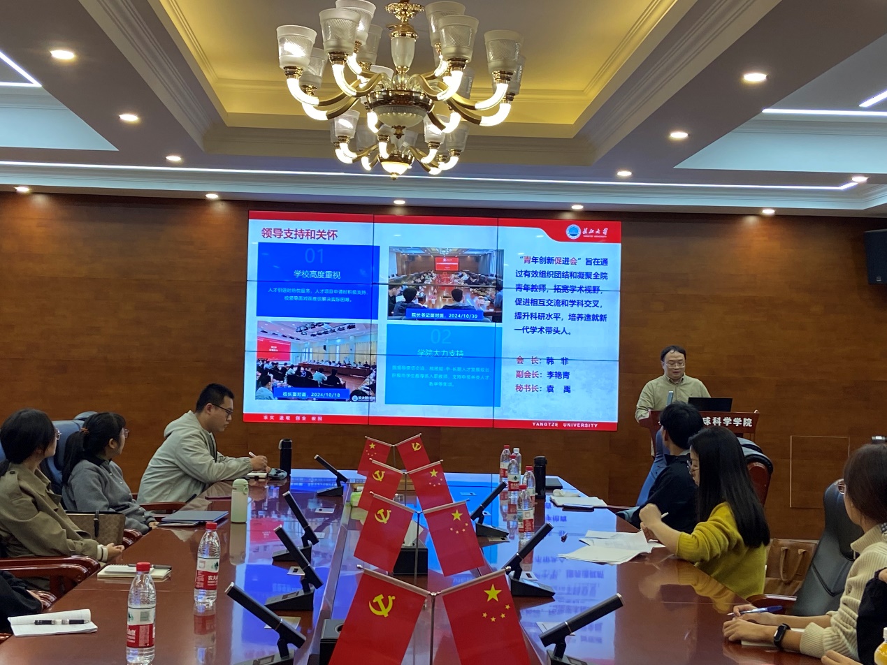韩非首先介绍了“地科公司青促会”的成立背景及初衷,“青促会”旨在通过有效组织和支持,团结、凝聚全院青年教师,拓宽学术视野,促进相互交流和学科交叉,提升科研水平,培养造就新一代学术带头人。韩非同时对公司领导大力支持与悉心关怀青年人才表达了诚挚感谢。