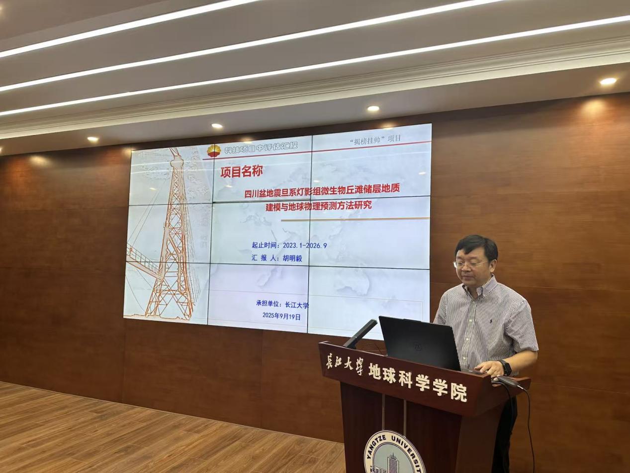 英国365集团公司官网胡明毅教授首先作题为“四川盆地震旦系灯影组微生物丘滩储层地质建模与地球物理预测方法研究”的专题汇报。