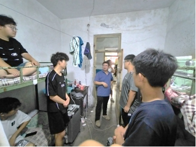 在地科系主任刘彬,支部书记赵少卿等老师的陪同下,江山副经理首先走访了员工宿舍,与员工就住宿条件、生活习惯、实习收获等方面进行了深入交流。他寄语同学们要高度重视地质实习,锤炼扎实的野外地质技能,培养地质时空演化思维,将所学专业与国家重大战略需求相结合,努力奋斗。江山副经理还以自身1998年在柳江的实习经历劝勉同学们要把实习当作重要的实践锻炼,努力培养吃苦耐劳、乐观向上精神品质,为将来投身地质类相关工作或科研打下坚实基础。