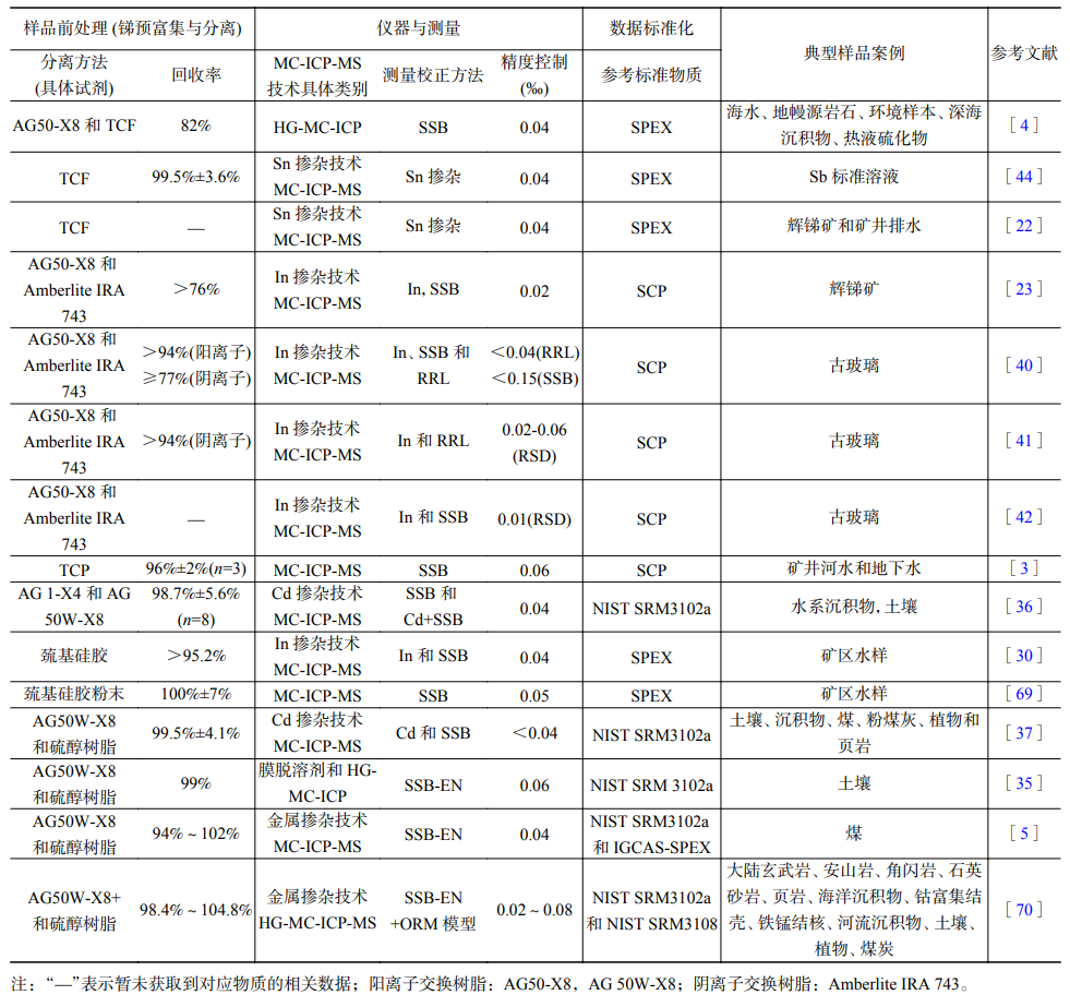 表1 锑同位素分析方法比较