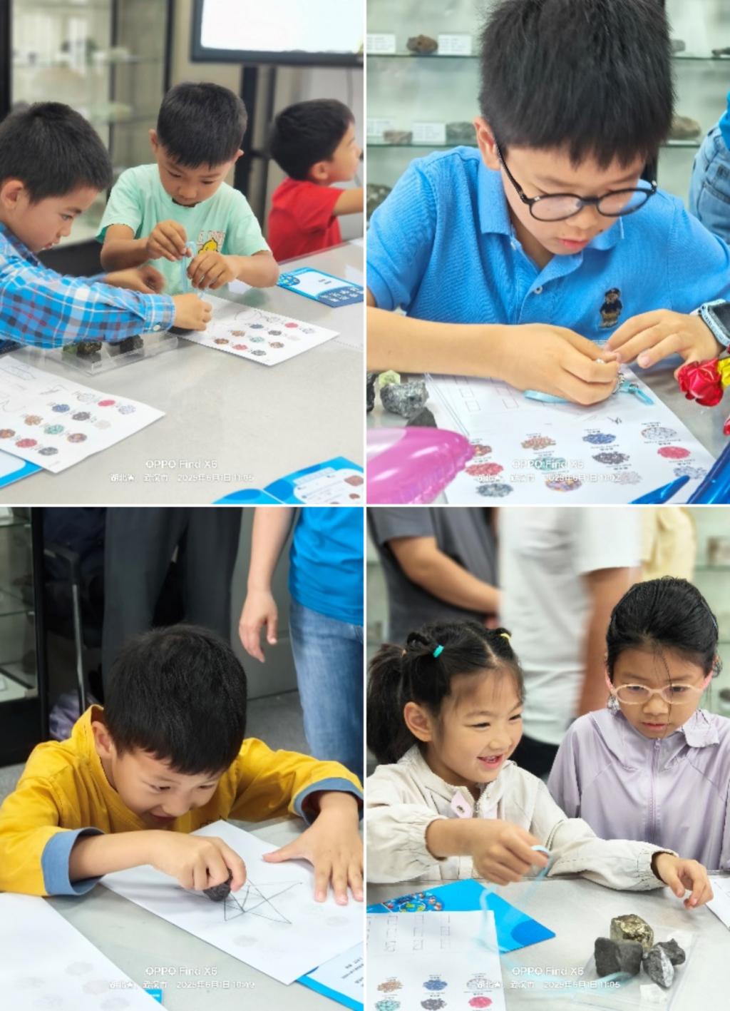 孩子们在高洁老师指导下体验不同矿物的特性