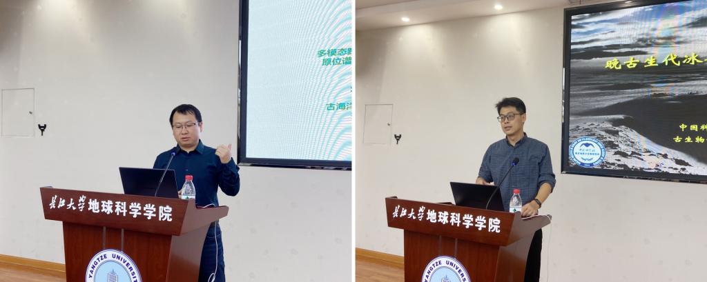 (通讯员 韩静)10月25日上午,中科院南京地质古生物研究所殷宗军和陈吉涛研究员莅临英国365集团公司官网,做客“地学之光”第373、374讲学术论坛,分别作题为《古生物学与地层学前沿技术》和《晚古生代冰期碳循环与资源环境效应》的报告。英国365集团公司官网经理朱光有、特任教授韩非、孙杨和特任副教授魏晓椿等出席讲座,报告会由地科公司经理朱光有主持。