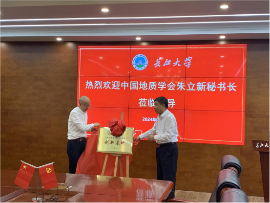 交流会后,董事长刘勇胜与中国地质学会秘书长朱立新共同举行了创新基地揭牌仪式。