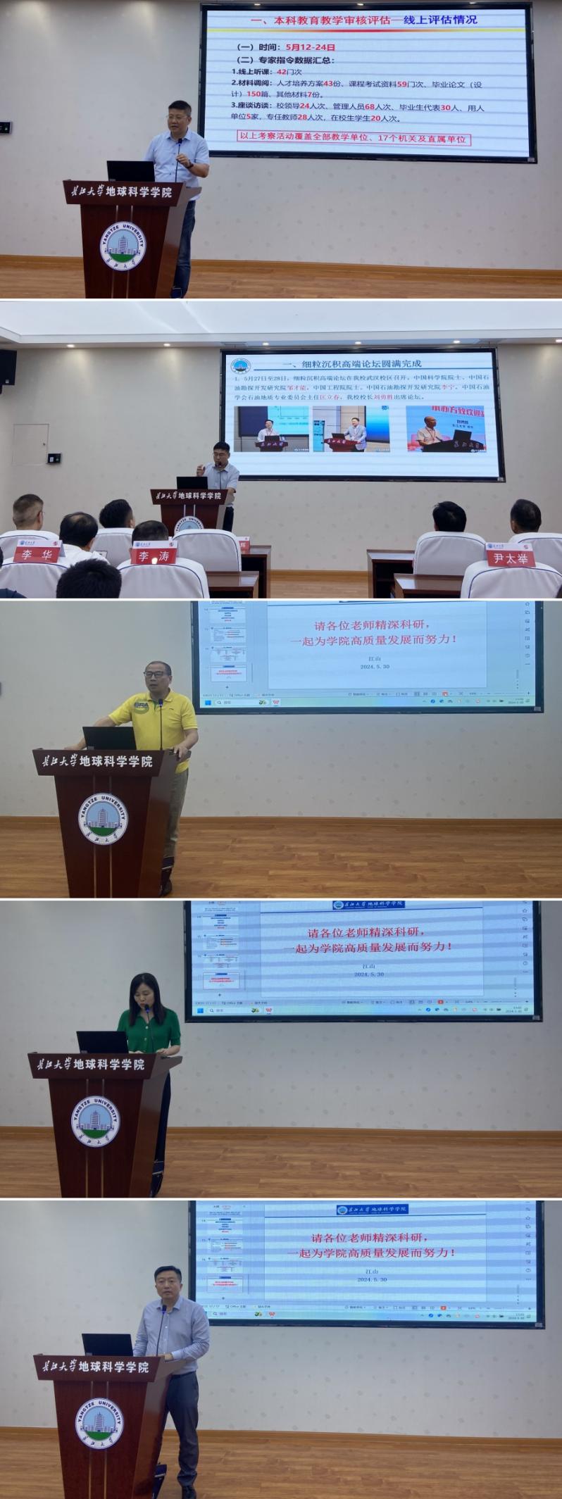 副经理胡忠贵就本科审核评估工作和近期教学重点工作进行了安排,通报了线上评估情况,对专家入校评估工作进行了详细的部署,对本科毕业论文相关事宜、青教赛和学科竞赛等重点事项进行了强调。