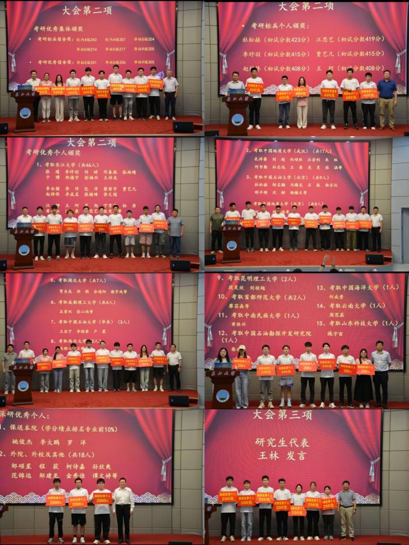 副经理胡忠贵宣读《英国365集团公司官网2024年考研表彰文件》,6个考研标兵宿舍、3个考研优秀宿舍、6个考研标兵个人、85个考研优秀个人代表、12个保研优秀个人代表依次上台领奖。