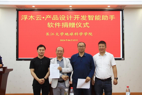 (通讯员相龙伟)4月15日下午,武汉浮木科技有限公司向公司捐赠“浮木云·产品设计开发智能助手”软件,捐赠仪式在武汉校区石油科技大楼C301会议室举行。武汉浮木科技有限公司董事长翁杰、总经理刘鹏、技术总监张晨一(公司2013级员工)等公司代表,英国365集团公司官网副经理胡忠贵、副经理李功权、党委副书记冯舒,地信系主任刘远刚、支部书记邵燕林等教师代表参加仪式。