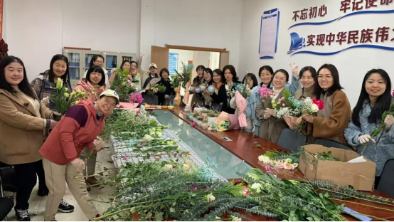3月8日上午,在公司C101党员活动室,分工会给每位老师准备了一盆可爱的小多肉当礼物,同时,老师们自主学习、巧手修剪、搭配花枝、交流技巧,拿出授课、做科研的专研精神,经过精巧的修饰与加工,在欢声笑语中将各色玫瑰、百合等普通的鲜花变成了令人赏心悦目的艺术品。大家手持自己的作品拍照留念,脸上洋溢着满满的幸福和成就感。