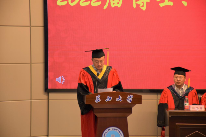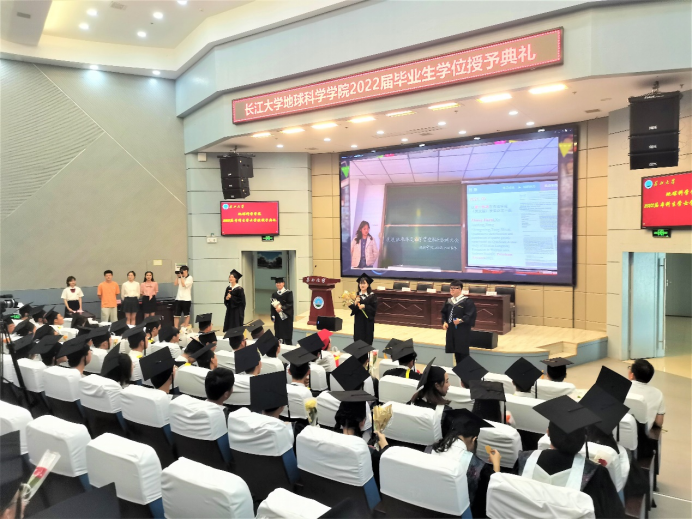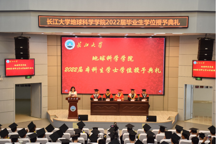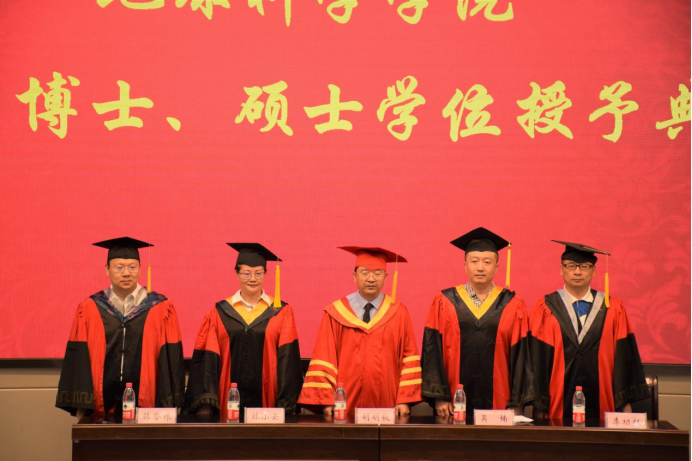 在热烈的掌声中,经理胡明毅、副经理吴楠教授、副经理韩登林教授、石油系林小云教授、地质系胡光明教授、石油系陈轩副教授、地信系李功权副教授、地科系江山副教授等八位导师先后分别列席毕业生学位授予仪式并上台就坐。出席毕业生学位授予仪式的还有地科公司党委书记杨全辉、副经理丁四兵、党委副书记任倩,以及各年级辅导员,他们共同见证这一难忘时刻。