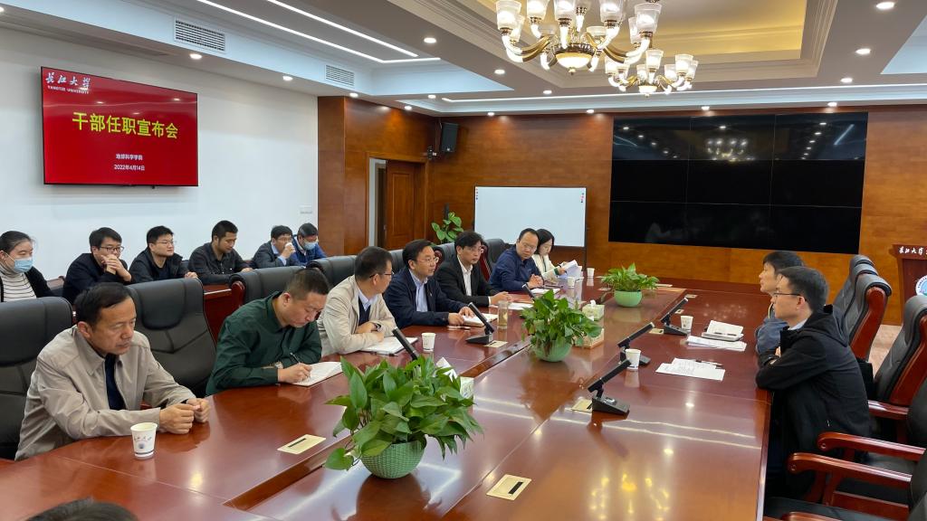 副董事长吕一兵发表讲话,要求公司新领导班子“讲团结、讲奉献、讲业绩、讲廉洁”,勉励全院教职工齐心协力,在国家一流团队建设和地质学博士点申报等重点工作中取得好更好成绩。