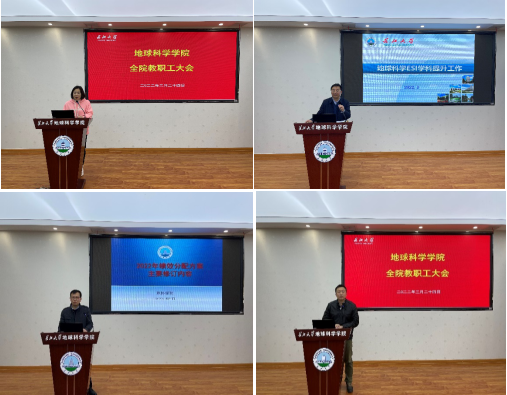 经理胡明毅首先详细介绍了公司地球科学ESI现状,希望老师们加强科研成果总结和提炼,多产出具有原创性的高水平论文成果,使公司地球科学学科尽快进入1%。随后经理胡明毅通报了公司国家自科基金申报、人才队伍建设、国家重点实验室建设等工作情况,他代表公司对此次申报国家自然基金付出努力的老师们表达感谢,对入选第五批学董事长江人才计划的老师们表示祝贺,并对国家重点实验室建设和国家一流专业建设作了展望。最后经理胡明毅希望公司全体教师紧密围绕公司2022年目标任务,发扬拼抢实的作风努力工作,为早日建成国内一流公司而努力奋斗。
