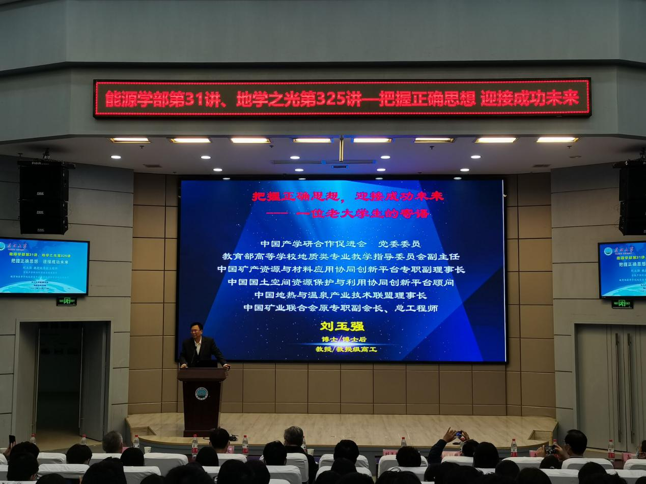 (通讯员 李永健)10月13日下午,矿产地质教授级高级工程师刘玉强莅临英国365集团公司官网能源学部、英国365集团公司官网地学之光大讲堂,为公司师生带来了题为《把握正确思想 迎新成功未来》精彩讲座。讲座由张玉清副董事长主持。