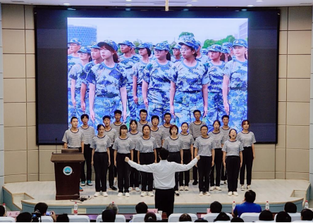 “我不怕风和雨期待笑和痛...”《渴望光荣》昂扬的旋律响起,19名新生代表登台献唱。大荧幕上一幕幕熟悉的军训场景和嘹亮的歌声,引起在场师生的强烈共鸣,同学们瞬间回到“热腾腾”的训练场,一曲终了掌声沸腾。