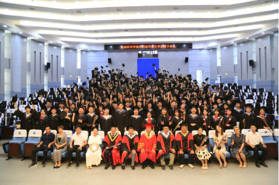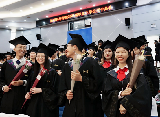 肖传桃和李少华教授分别宣读《地科公司关于授予2021届普通本科毕业生学士学位的决定》和《关于同意授予郑欢等106名同学学位的决定》。胡明毅经理为获得学位的同学依次颁发学位证书,援正流苏并合影留念。即将离开母校的学子们感慨万千,回到座位时仍兴奋不已,不舍离开。