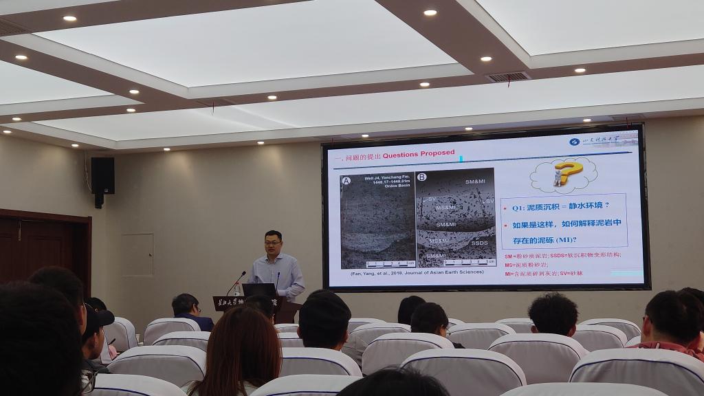 讲座伊始,杨教授提出了四个关键性的科学问题,“泥质沉积是否反映了静水环境?细粒沉积的沉积速率是否很慢?细粒沉积物的沉积构造是否如我们想象中的简单?砂质沉积物被搬运至距离河口近千公里其搬运机制是什么?”。