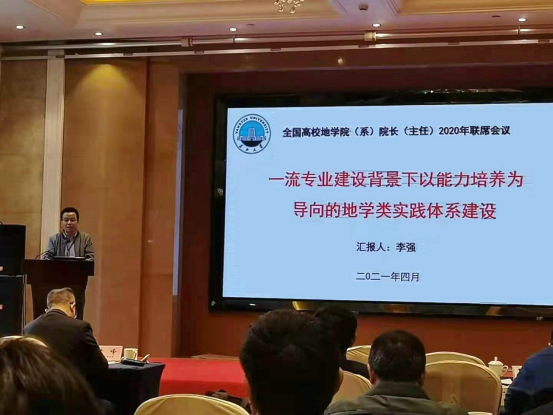 会上,公司李强副经理代表公司作“一流专业背景下以创新能力培养为导向的地学类实践体系建设”报告。李经理介绍公司通过构建“基础、专业、创新”三层次实践教学平台,依托“双能型”团队队伍,围绕“兴趣、基础、思维、综合、创新”五要素实践教学思路,取得了地学类人才创新能力培养的良好成效。