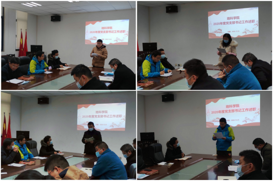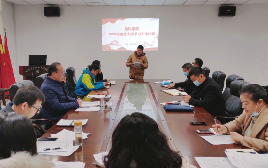 地质系党支部书记刘彬、石油系副主任叶琳、地信系党支部书记邵燕林、机关党支部书记马丽、协同中心党支部书记孟江辉、实验中心主任韩登林分别代表所在支部进行工作述职。各支部分别从开展政治理论学习及支部主题党日活动情况,配合行政开展教学、科研、专业建设、队伍建设等情况,特色亮点工作情况等三大方面进行汇报。在述职评议中,各支部结合“党建结合业务,业务打造品牌”的要求阐述了各支部的特色:地质系专业课程组的建设、石油系资工认证资料完善跟进的工作、地信系“以赛促教、以赛促学”新的发展模式、协同中心获评2020年度温暖长大、实验中心老师们“一岗多职”的工作奉献。