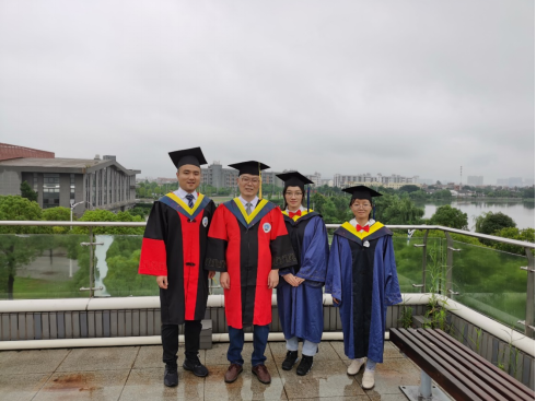 公司导师何幼斌教授也主动参与到毕业生返校离校相关事务中来,工作再忙也会抽时间与员工保持联系。员工返校后,他还精心换上导师服与其合影留念。“虽然天气微凉,但心却是温暖的,非常感谢导师三年来对我学习、生活上的指导和关心,希望老师多注意身体,别太操劳。”矿产QX171班的郭笑同学动情地说到。
