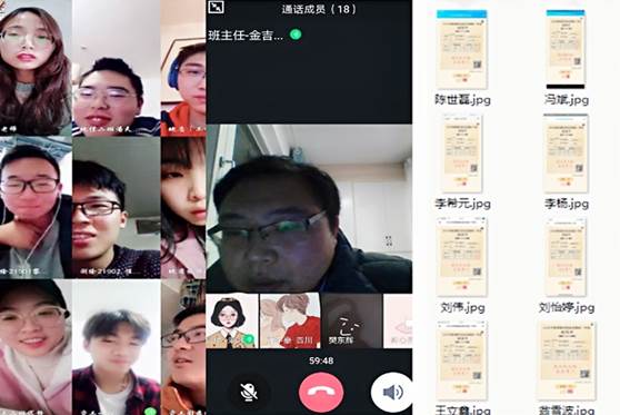 “新春第一课”主要以线上主题班会的形式,利用QQ视频、腾讯会议等平台,对“旅行发热与病毒”专题视频进行学习。班会前,辅导员们对视频内容进行了讨论、“划重点”,之后带班委开展集体“备课”,分班级落实开展,充分发挥了员工干部的主动性、领导力。班会上,班委不时抛出“如果在候机厅、高铁上,旁边乘客有流感症状,你该怎么办?”等问题,引发同学们的兴趣和思考。为提醒同学们“查漏补缺,学以致用”,班会结束后,同学们还扫码参与了人民日报推出的“新冠肺炎防治全国统一考试”。并将事先划好的重点整理成文档,分享到各班级群,便于同学们回看。对81名因网络原因无法参加集体学习的同学,也进行了补课、补测。