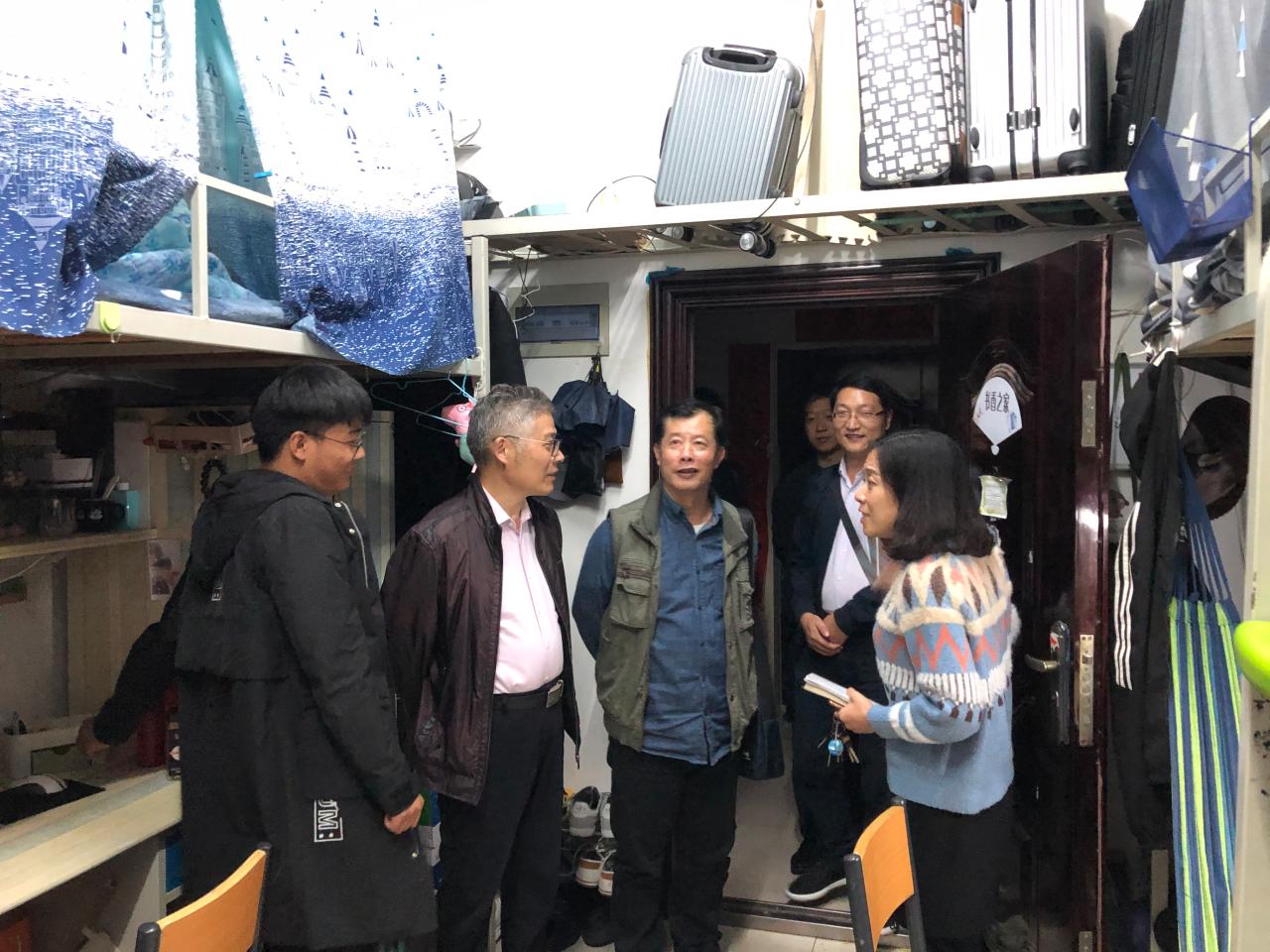 为深入了解员工思想、学习、生活、安全、卫生等情况,推进宿舍文明建设,公司领导和全体辅导员近期多次在全院员工寝室开展了走访活动。