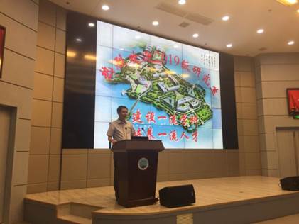 下午15时,开学典礼在庄严的国歌声中拉开帷幕。何幼斌经理首先代表公司对2019级研究生的到来表示热烈欢迎,然后分别从地科院悠久的办学历史,丰硕的研究成果,广阔的科研领域等三个方面为新生进行了讲解,并对全体研究生提出5点希望:1.要对自己高标准严要求;2.要全面明确自己的研学目标;3.要踏实勤奋、孜孜以求、锲而不舍地迎难而上;4.严谨为学、诚信为人;5.要学会做人,为学先为人。