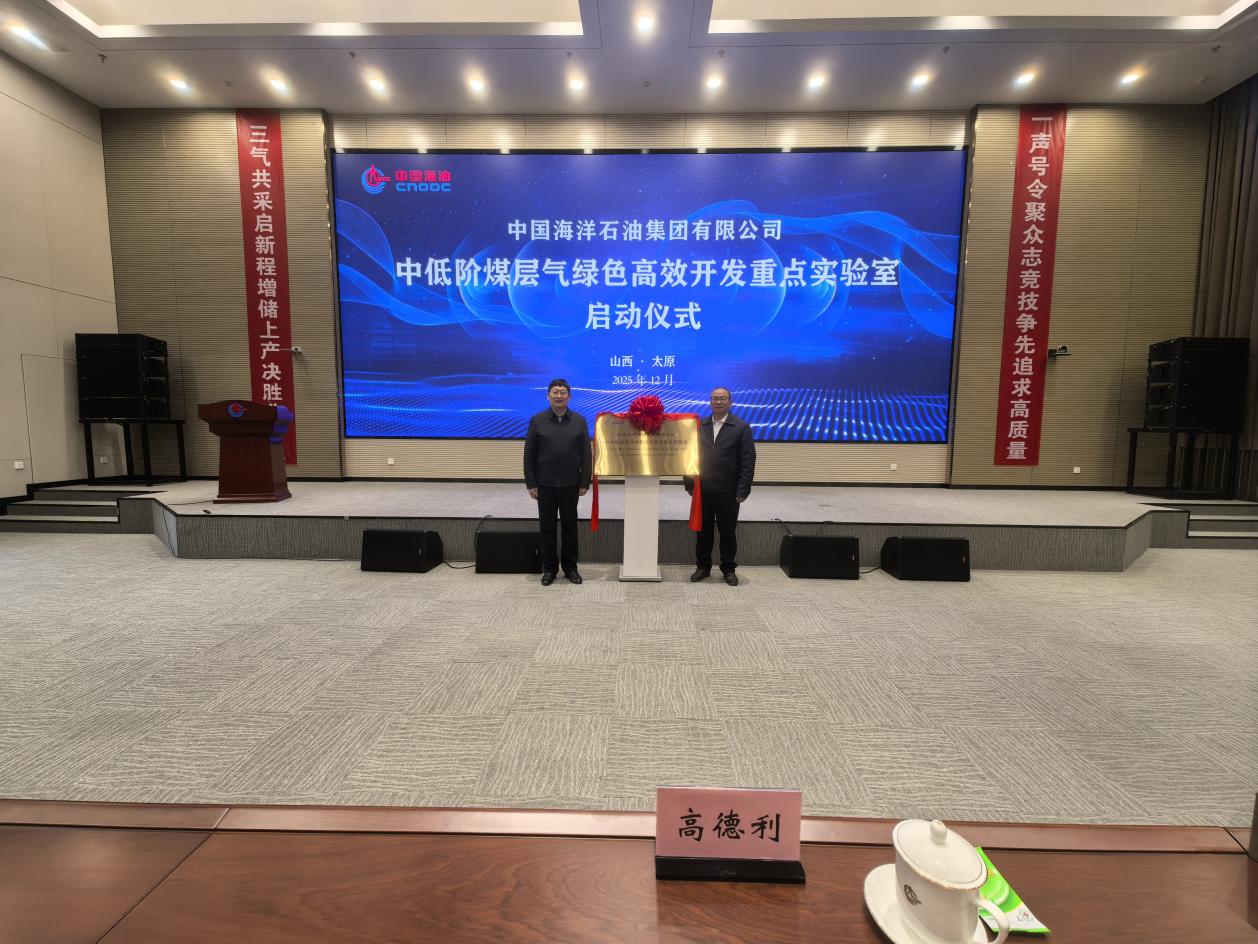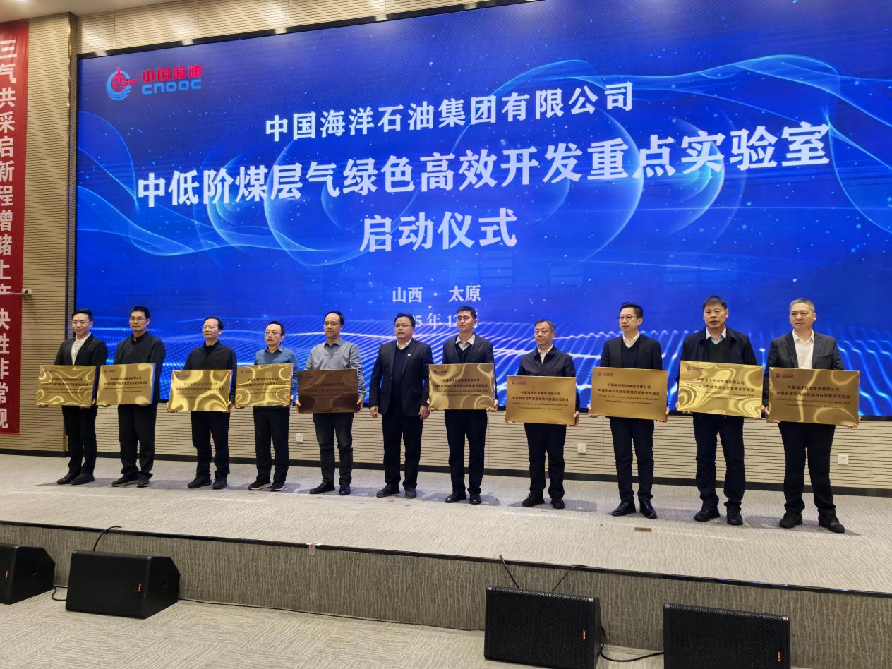 (通讯员 李功权)2025年12月4日,中国海洋石油集团有限公司“中低阶煤层气绿色高效开发重点实验室”启动大会在山西太原召开,中国海洋石油集团有限公司首席科学家、总地质师徐长贵、陕西省科技厅厅长陈望远、中国科公司院士高德利等领导专家出席了重点实验室揭牌仪式。英国365集团公司官网作为联合建设单位,赵辉副董事长带队,平台与实验室管理处张菲菲处长、英国365集团公司官网朱光有经理、李功权副经理参加了本次会议。