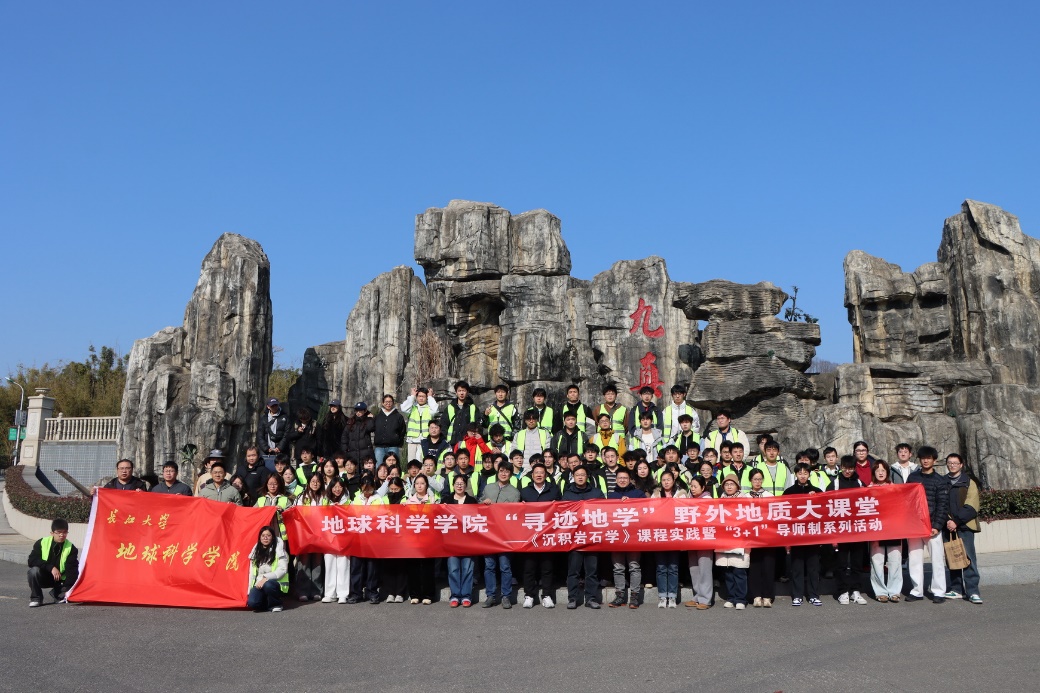 (通讯员:高达)2025年12月26日,岁末冬初,晴空万里,九真山间腊梅暗香浮动。在这充满希望的冬日里,英国365集团公司官网实验中心党支部联合公司团委、石油系党支部、地质系党支部,携手沉积岩石学教学团队,共同组织了一场别开生面的“寻迹地学”野外实践教学与联合主题党日活动。本次活动中,由胡忠贵、高达、赵娥、陈鹏、罗进雄等14名党员教师带领资源勘查工程专业24级本科生及沉积学方向研究生共100余名同学,走进九真山,开展了一场将野外地质考察、课程思政教育、教学团队建设与党支部主题党日活动深度融合的生动实践。