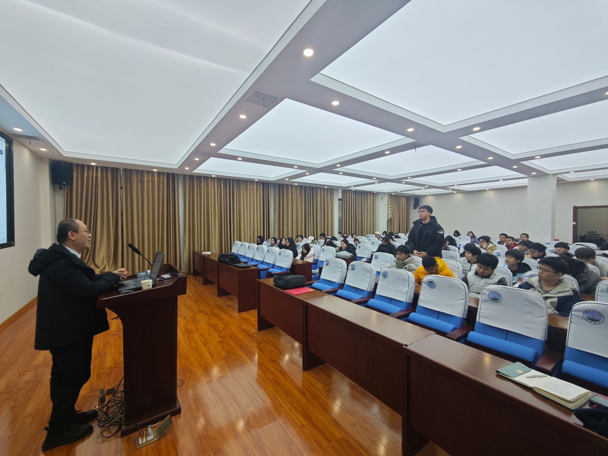 在专题讲座中,刘鹏副总经理以软件开发的本质为切入点,通过与现场同学的互动,系统分析了传统软件开发的难点与痛点。介绍了人工智能时代下的软件开发新模式,刘鹏强调,软件开发应遵循第一性原理,并详细讲解了基于AI智能体和代码知识图谱的软件自动生成平台以及行业算法接入等方面的技术优势。刘鹏结合丰富的实战经验,对比展示了AI技术在解决复杂行业问题中的巨大潜力。此外,他还为同学们介绍了浮木云的视频课程、交流社群等学习资源,助力员工提升职业技能与就业竞争力。