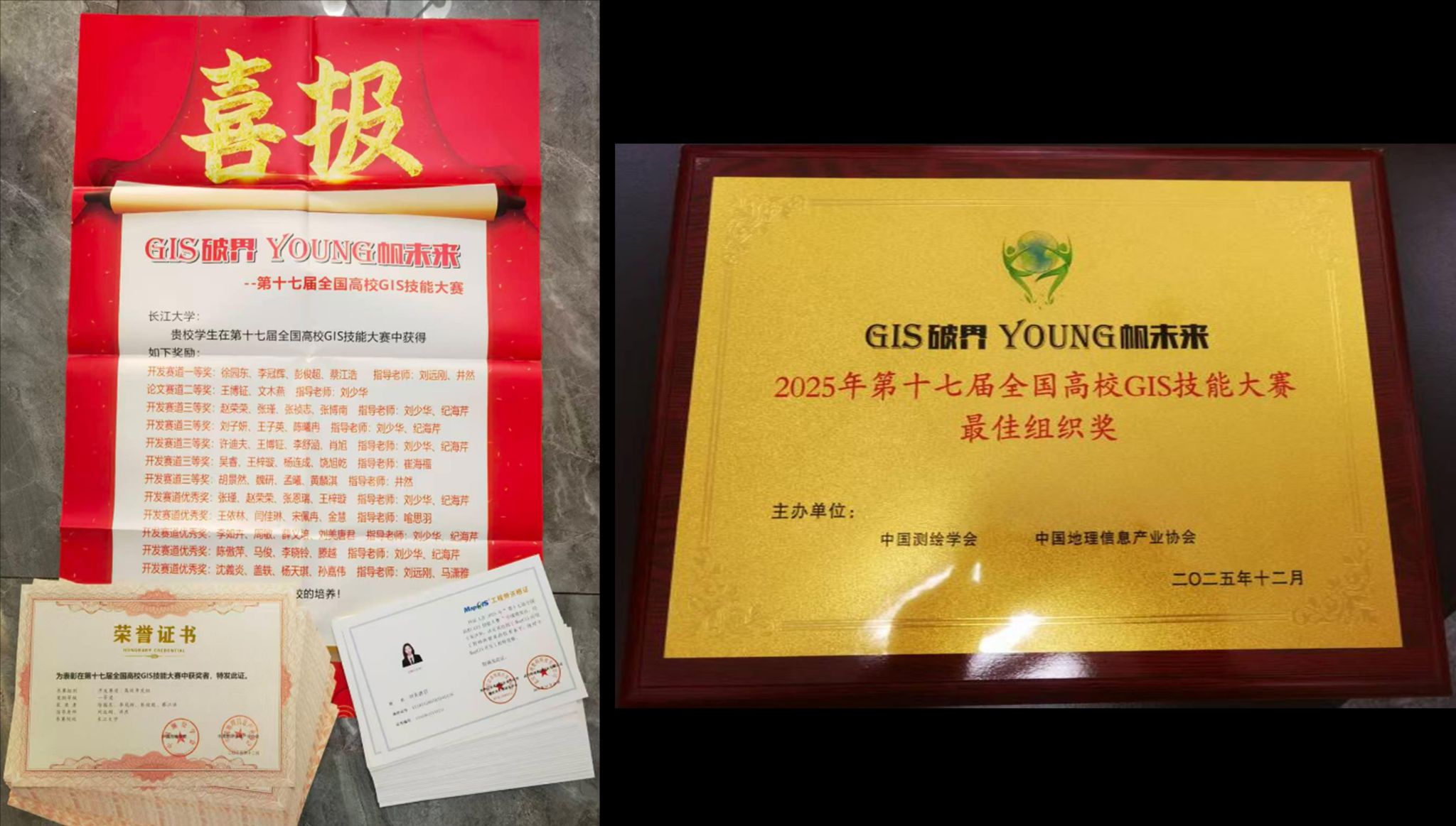 全国高校GIS技能大赛由中国测绘学会、中国地理信息产业协会共同主办,国家地理信息系统工程技术研究中心、地理信息系统产业技术创新战略联盟协办,武汉中地数码科技有限公司承办。大赛已成为中国GIS领域最具影响力的创新型赛事之一,受到了全国各大科研院校和行业的广泛关注,成就众多优秀科研作品,成为广大GIS学子发挥创新思维、提升实践能力的专业舞台。1月11日,大赛主办方发来喜报,公司获得开发赛道一等奖1项,三等奖5项,优胜奖5项,论文赛道二等奖1项,创历史新高。公司被评为最佳组织单位。