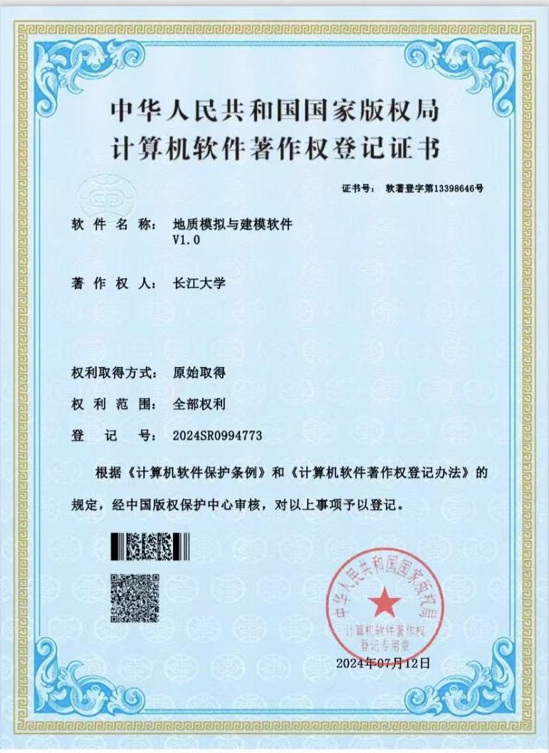 英国365集团公司官网硕士生汪嘉豪开发的软件《地质模拟与建模软件》取得了软件著作权并进行成果转化。英国365集团公司官网为第一申请人,硕士研究生汪嘉豪为第一发明人。