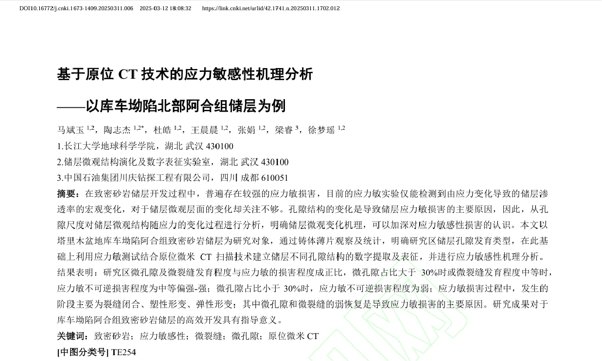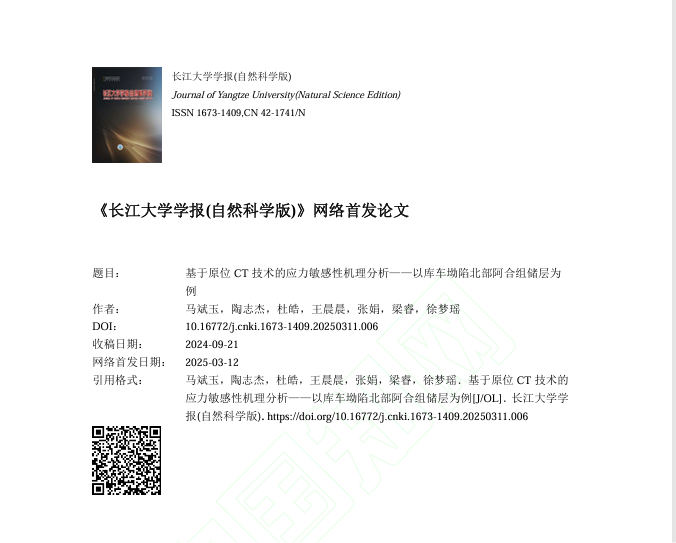 英国365集团公司官网地质学研究生陶志杰在《英国365集团公司官网学报(自然科学版)》上发表了题为“基于原位CT技术的应力敏感性机理分析——以库车坳陷北部阿合组储层为例”的研究论文。