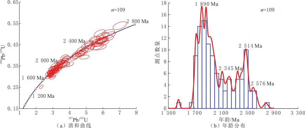 结果表明黄旗口组为中元古代长城系晚期沉积,华北克拉通北缘西段孔兹岩带为其主要物源区,新太古代晚期(约2500Ma)陆壳物质和太行—吕梁基性岩墙群为其次要物源区。该结果为研究区地层对比和年代地层格架建立提供了新的年代学资料。