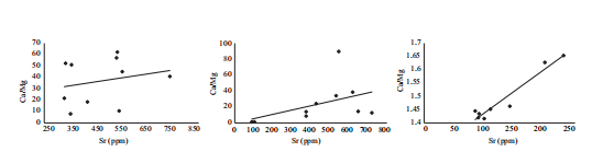 图1 中上寒武统碳酸盐岩中Ca/Mg-Sr相关性图