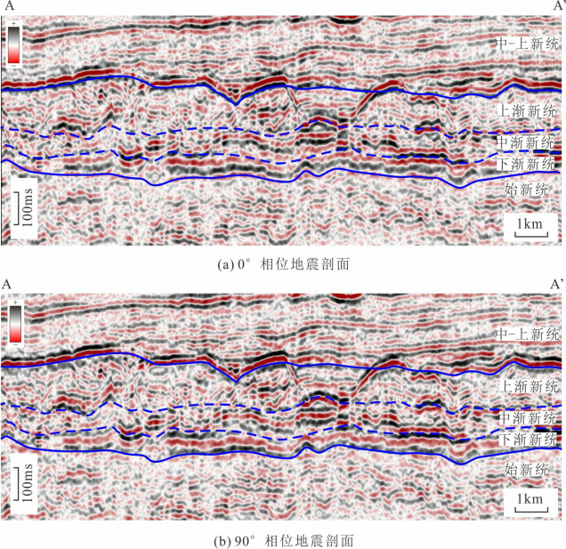 图30°和90°相位转换地震剖面
