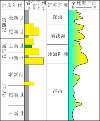 结果表明:早渐新世至晚渐新世依次发育砂质深水水道-末端扇复合体系、砂泥质充填深水水道-决口扇体系和泥质深水水道体系,块体搬运沉积始终伴生发育,沉积演化过程主要受全球海平面控制,可以划分为早渐新世海平面缓慢下降期、中渐新世海平面快速上升期和晚渐新世海平面快速下降期,海平面缓慢下降有利于陆源粗碎屑物质通过深水水道向大洋盆地输送,是形成砂质深水水道-末端扇-大型伴生块体搬运的重要前提,故而下渐新统砂体最为发育。