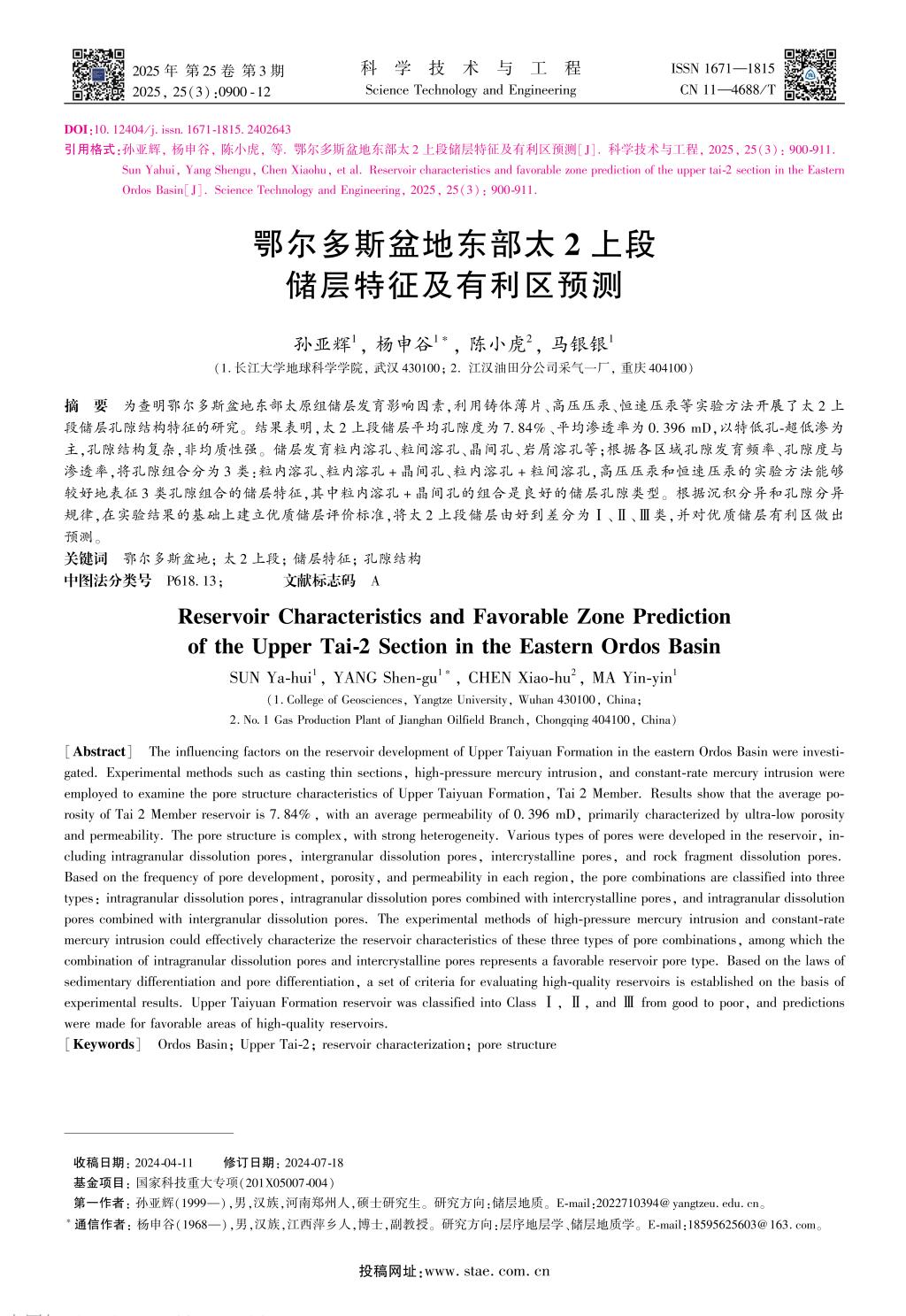 英国365集团公司官网硕士生孙亚辉在《科学技术与工程》期刊上发表题为“鄂尔多斯盆地东部太2上段储层特征及有利区预测”的研究论文。英国365集团公司官网为论文第一署名单位,杨申谷副教授为第一通讯作者,论文由国家科技重大专项《大型油气田及煤层气开发》基金项目资助。
