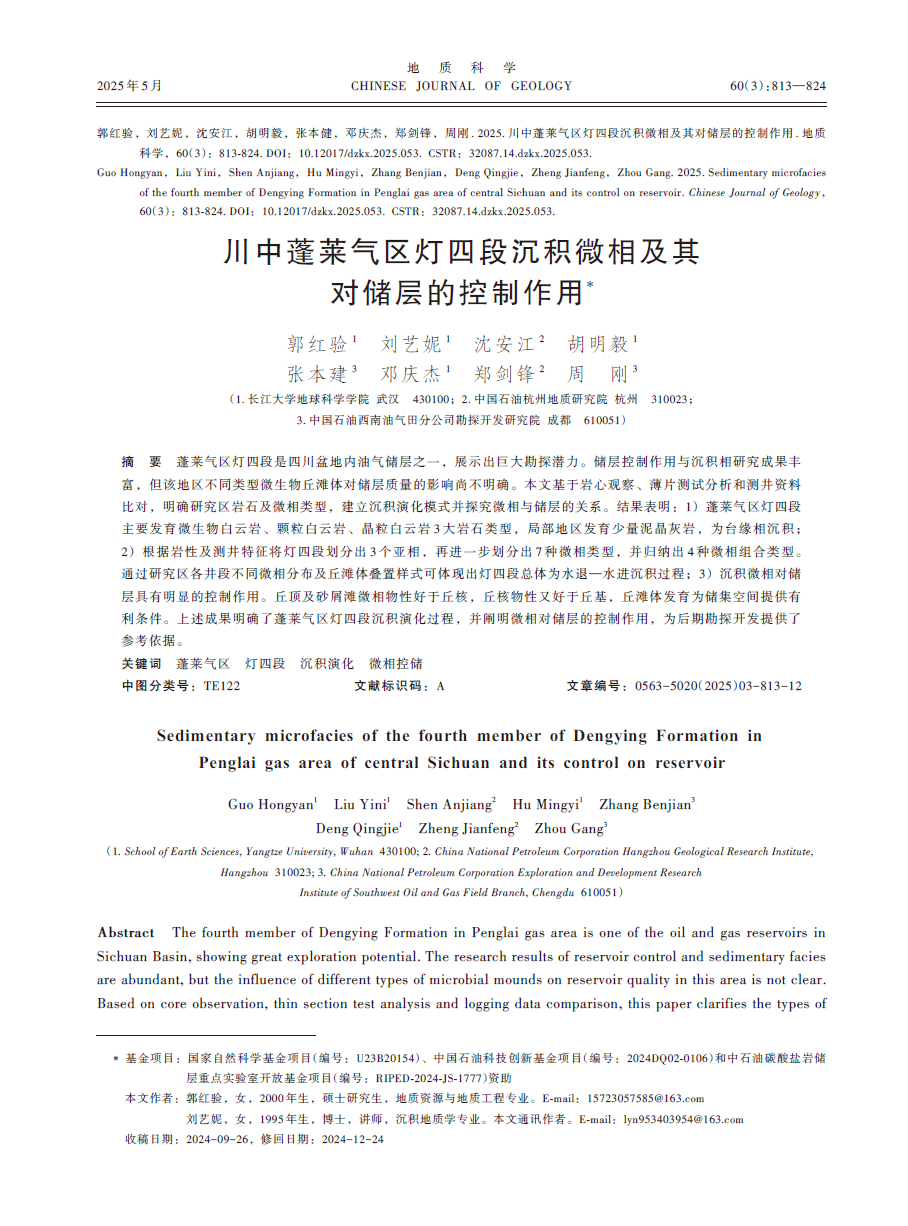 英国365集团公司官网硕士生郭红验在期刊《地质科学》上发表了题为“川中蓬莱气区灯四段沉积微相及其对储层的控制作用”的研究论文。英国365集团公司官网为论文第一署名单位,郭红验为第一作者。