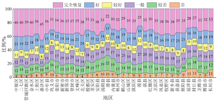 洪涝灾害发生后通过植被指数和灯光指数定量评估灾后恢复情况,对灾区经济建设和生态恢复的评估具有重要科学意义。该文以河南“7·20”暴雨灾害区为研究区,基于日度和月度NPP-VIIRS数据、Sentinel-NDVI、MODIS-EVI数据和统计年鉴数据,构建归一化差异城市指数(normalized difference urban index,NDUI)来表征城市内部空间细节;基于回归模型模拟人口和国内生产总值的空间分布;从研究区的夜间灯光数据和植被覆盖数据2个不同的维度来评估洪涝灾害。结果表明:高危区和中危区总面积为1 429.04 km2,占研究区总面积的6.06%,高危地区主要分布在郑州西部、新乡东部、安阳东部、鹤壁北部,其中郑州市受灾严重程度最高;从植被覆盖度恢复率(vegetation cover recovery rate, VCRR)来看,卫辉市、淇县、滑县、林州市等地区整体植被恢复情况较差,其VCRR的值大部分在0以下,植被覆盖有恶化趋势。NDUI与社会经济统计数据拟合精度高于0.8,表明NDUI可以在洪涝灾害发生后应用于精确位置救援和灾后针对性重建工作;NPP-VIIRS和MODIS-EVI评估洪涝灾害的结果具有很好的互补性,2种数据的有机结合进行洪涝灾害研究,对灾后救援和恢复评估均有较高的应用价值。