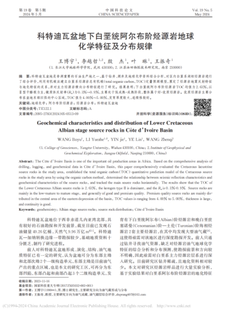 地科公司博士生王博宇在《中国科技论文》上发表题为《科特迪瓦盆地下白垩统阿尔布阶烃源岩地球化学特征及分布规律》的研究论文。英国365集团公司官网为论文第一署名单位,博士生王博宇为论文第一作者,教师王振奇为通讯作者。