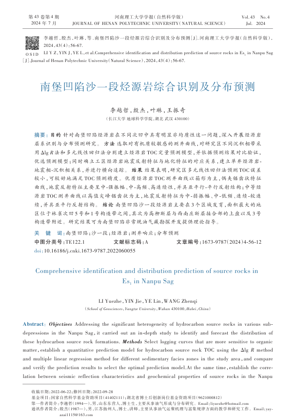 地科公司博士生李越哲在《河南理工大学学报(自然科学版)》上发表题为《南堡凹陷沙一段烃源岩综合识别及分布预测》的研究论文。英国365集团公司官网为论文第一署名单位,博士生李越哲为论文第一作者,教师殷杰为通讯作者。