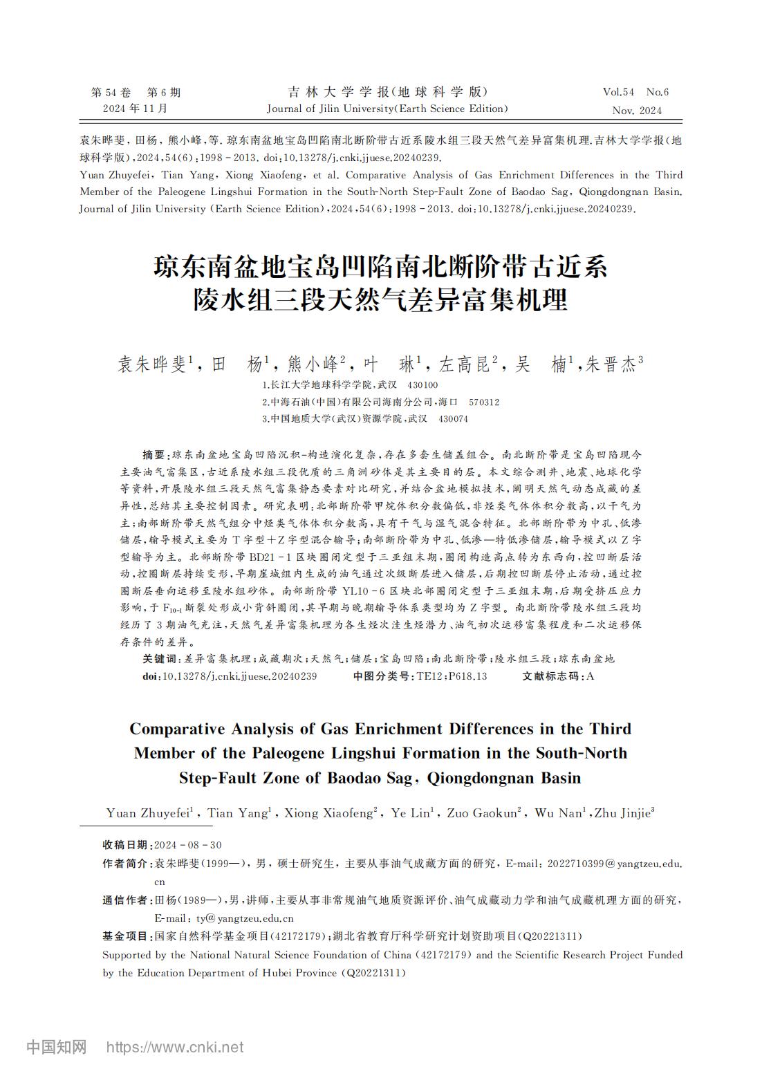 英国365集团公司官网地质学研究生袁朱晔斐在《吉林大学学报》上发表了题为“琼东南盆地宝岛凹陷南北断阶带古近系 陵水组三段天然气差异富集机理”的研究论文。英国365集团公司官网为论文第一署名单位,硕士生袁朱斐晔为论文第一作者,教师田杨为通讯作者。