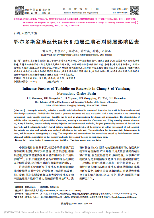 英国365集团公司官网博士生刘国文在期刊《科学技术与工程》上发表题目为“鄂尔多斯盆地延长组长8油层浊沸石对储层影响因素”研究论文。英国365集团公司官网为论文第一署名单位,胡望水教授为通讯作者。